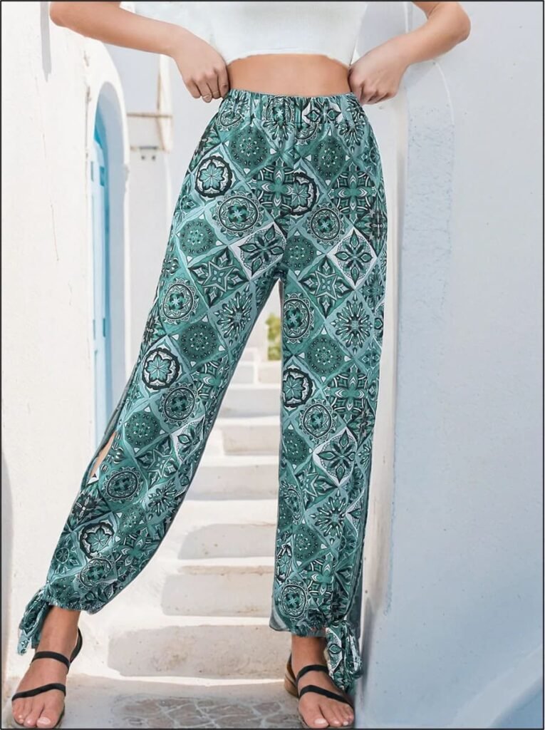 When you’re done, style your new harem pants with crop tops, tank blouses, or oversized tees. Add chunky jewelry, a woven bag, and sandals to complete your effortlessly boho-chic look.